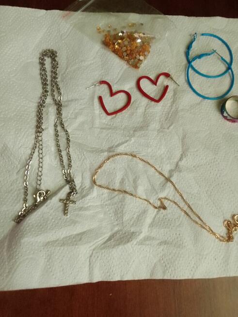 Srebny lancuszek z krzyzykiem i zloty lancuszek kolczyki zwykle naklejki do paznokci i pierscionek calosc 60 zl nie wysylam ...